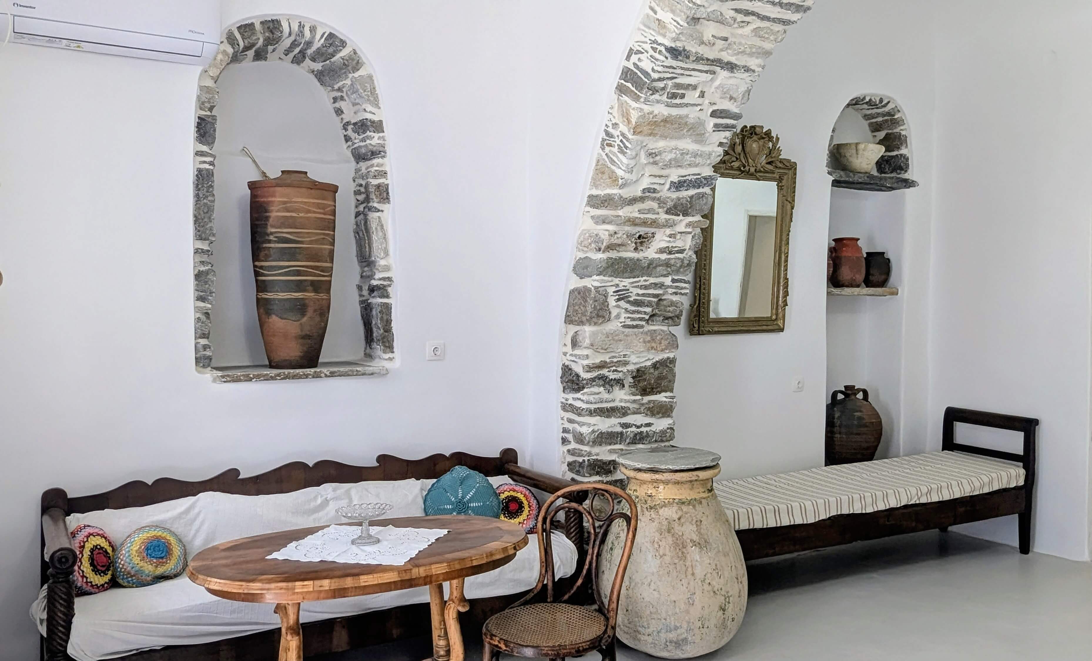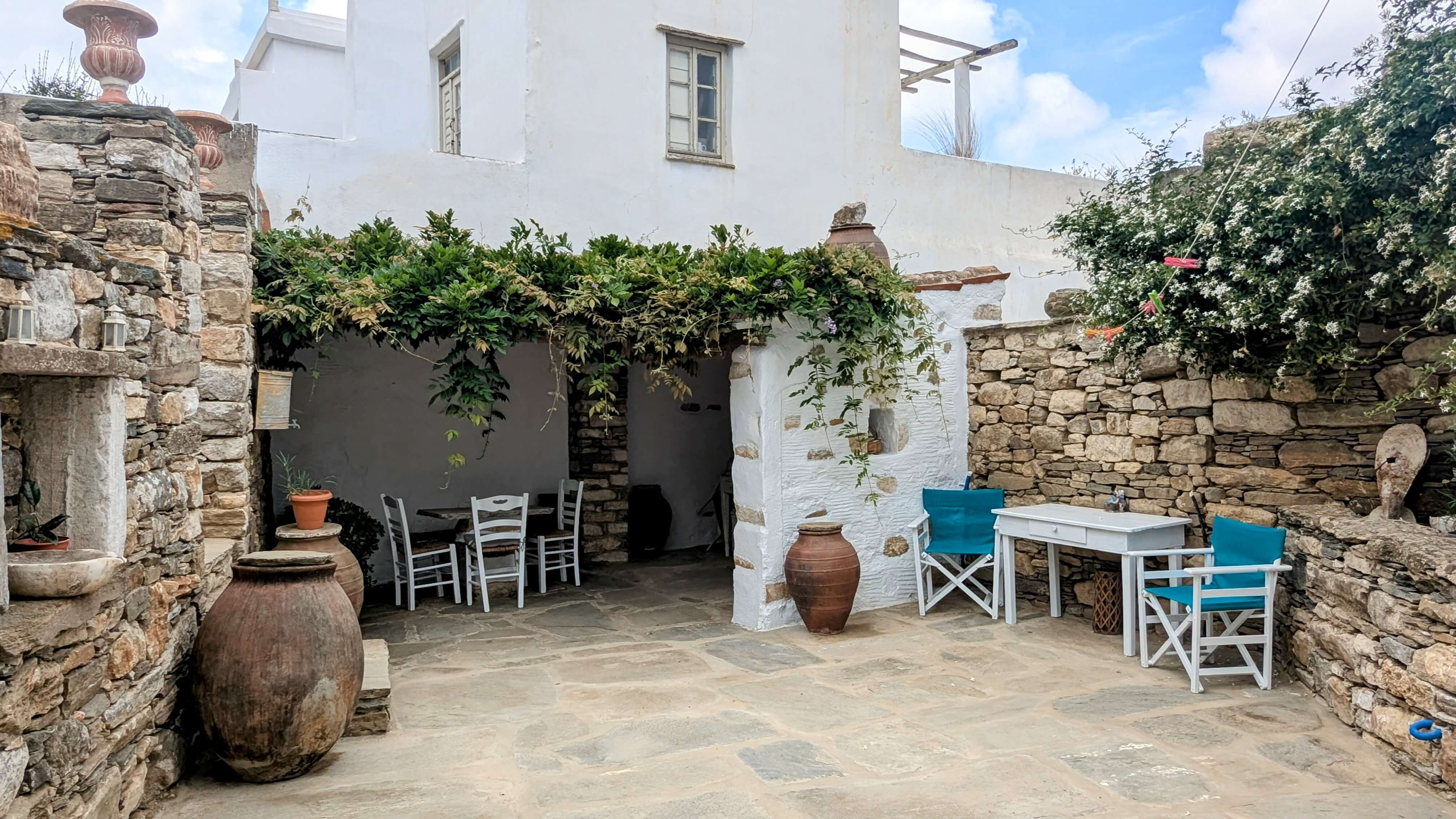 Σας καλωσορίζουμε στο Sofia House. Πρόκειται για ένα πέτρινο σπίτι του 1875 που αποτελούσε τμήμα της σχολής Ουρσουλίνων και σήμερα ανακαινισμένο από εμάς τους νέους ιδιοκτήτες, που με πολύ αγάπη έχουμε φροντίσει να κρατήσουμε την παραδοσιακή αρχιτεκτονική τού τόπου μας. Έτσι, ο επισκέπτης μπορεί να δει τα θαυμάσια μαρμάρινα υπέρθυρα που βρίσκονται στο κτήριο, να δει το παλιό πατητήρι και διάφορα παλιά έπιπλα που στολίζουν τους χώρους μας…
